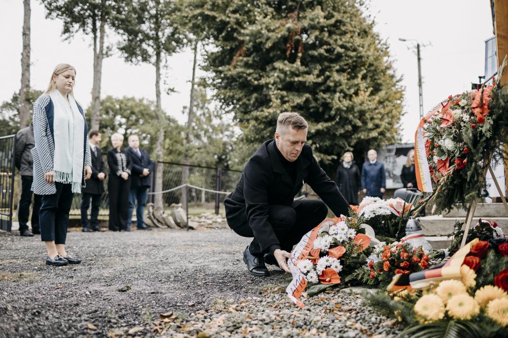 W imieniu mieszkańców Gminy Brzeszcze kwiaty i znicz złożył Łukasz Kobielusz Zastępca Burmistrza Brzeszcz wraz z Wiceprzewodniczący Rady Miejskiej Jackiem Wawro oraz Radnym Gminy Brzeszcze Janem Korczykiem. Ponadto kwiaty złożyła delegacja Samorządu Osiedlowego nr 5 -  Maciej Puzoń Przewodniczący Samorządu oraz Lidia Czubin.
