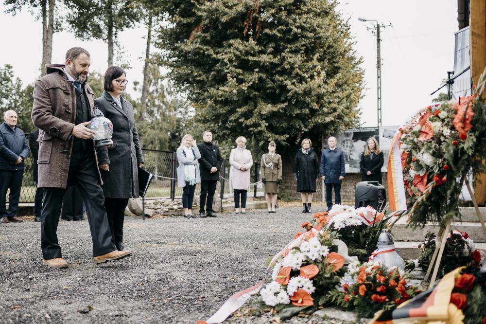 Podczas uroczystości złożono wieńce i wiązanki oraz zapalono znicze przez następujące osoby i delegacje: w imieniu Zarządu Województwa Małopolskiego Marszałek Województwa Małopolskiego  Iwona Gibas wraz z  Jakubem Przewoźnikiem Kierownikiem Agendy Zamiejscowej Urzędu Marszałkowskiego Województwa Małopolskiego, Wicestarosta Oświęcimska Teresa Jankowska, Wójt Gminy Oświęcim Mirosław Smolarek, Dagmar Hillebrand Konsul Niemiec, Konsul Generalny Austrii Martin Gärtner, Zastępca Dyrektora Instytutu Pamięci Narodowej Oddział Kraków Cecylia Radoń, w imieniu Wojskowego Centrum Rekrutacji w Oświęcimiu kapral Natalia Herma.