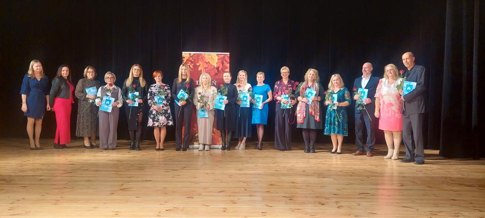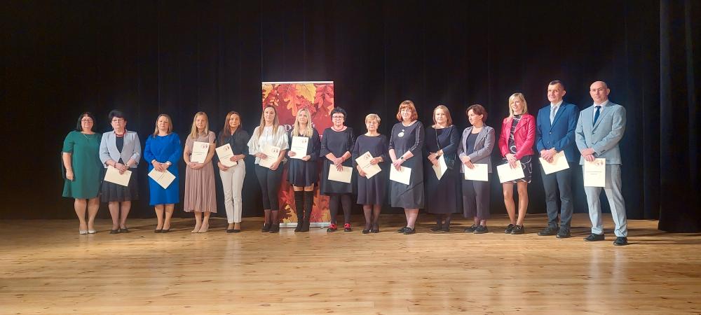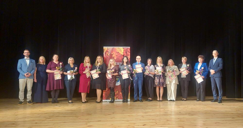 We wtorek 14 października w sali widowiskowej Ośrodka Kultury w Brzeszczach odbyła się tradycyjna gala z okazji Dnia Edukacji Narodowej. Na zaproszenie Burmistrza Radosława Szota w uroczystościach udział wzięli dyrektorzy i nauczyciele oraz pracownicy szkół z terenu Gminy Brzeszcze, przedstawiciel Małopolskiego Kuratorium Oświaty w Krakowie, a także delegacje instytucji i organizacji współpracujących z placówkami edukacyjnymi.