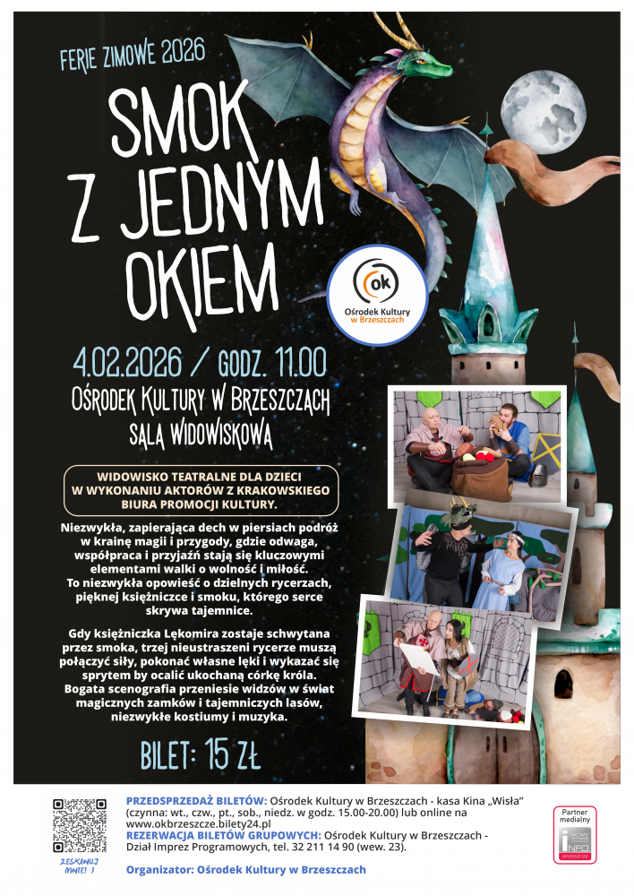 - rezerwacja biletów grupowych: Ośrodek Kultury w Brzeszczach, Dział Imprez Programowych, tel. 32 211 14 90 wew. 23.