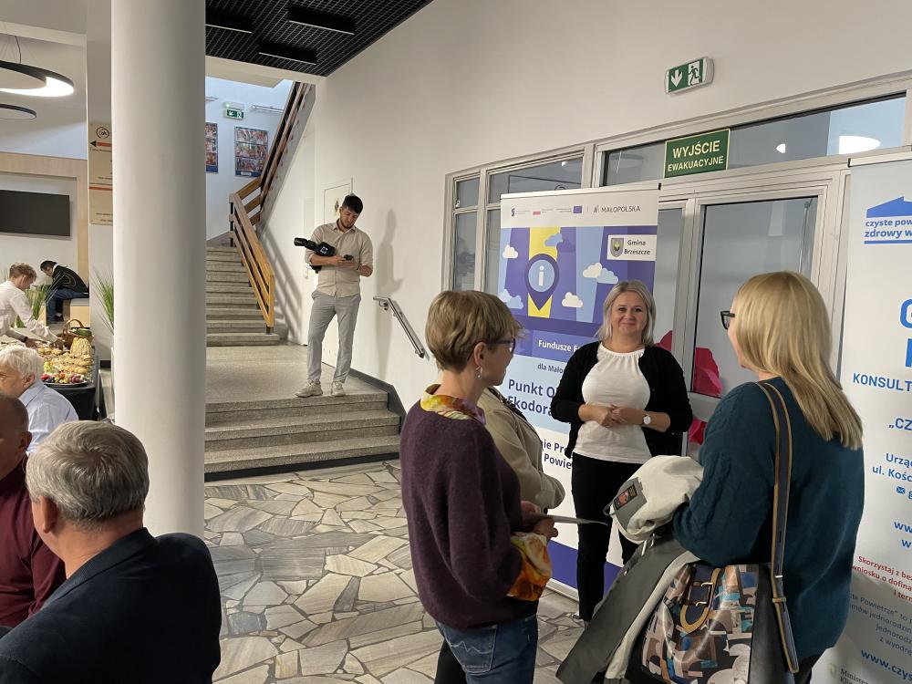 Podczas spotkania w ramach stoiska Gminny Ekodoradca zapoznał uczestników wydarzenia z projektem „Eko-Brzeszcze. Funkcjonowanie Punktu Ekodoradztwa w Gminie Brzeszcze.”, z bieżącymi wytycznymi dotyczącymi ochrony powietrza oraz formami dofinansowania inwestycji termomodernizacyjnych.