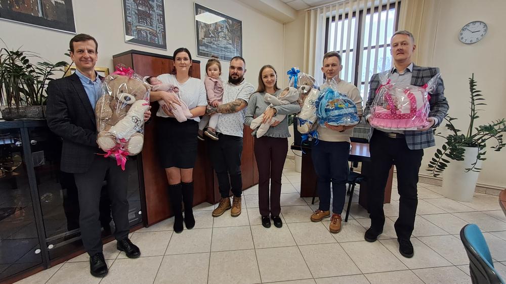 Burmistrz Radosław Szot wraz ze swoim Zastępcą Łukaszem Kobieluszem przyjęli w Urzędzie Gminy wyjątkowych gości.Leon i Lidia to pierwsi mieszkańcy Gminy Brzeszcze urodzeni w 2026 roku. Pani Paulinie i panu Sławomirowi, rodzicom Leona oraz pani Klaudii i panu Jakubowi, rodzicom Lidii, burmistrzowie złożyli życzenia zdrowia oraz przekazali okolicznościowe upominki.