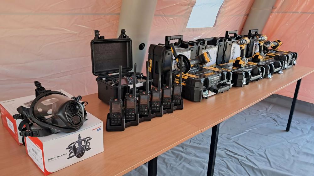 Kupiono także odzież ochronną przeciwchemiczną, maski z filtropochłaniaczem, radiotelefony i ładowarkę 6-stanowiskową, bariery drogowe, przecinarki do betonu, szlifierki kątowe, węże ssawne oraz węże tłoczne z akcesoriami, osuszacze powietrza