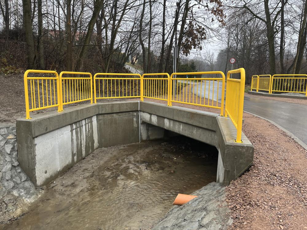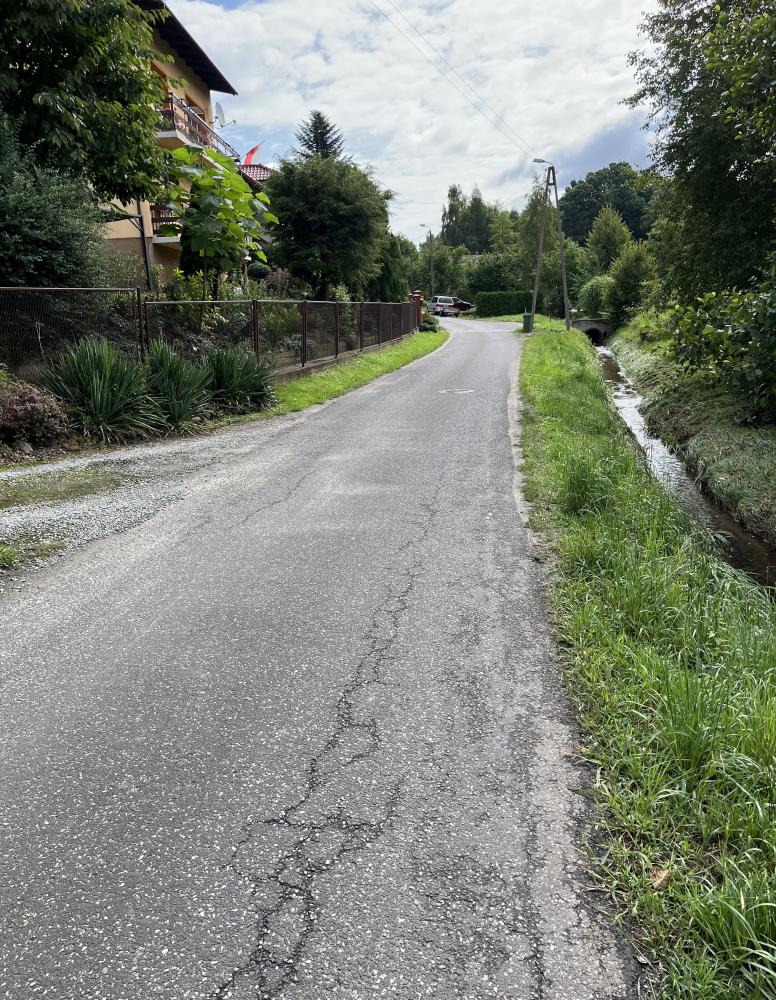Zakres robót, realizowanych przez firmę Zakład Budowlany "MOSTBUD" Eugeniusz Klimczak z Bielska - Białej, obejmował wykonanie nowej konstrukcji fragmentu drogi oraz wykonanie nowej nawierzchni - nakładki asfaltowej na odcinku ok. 240 m, rozbiórkę i odbudowę istniejącego mostu/przepustu oraz udrożnienie i umocnienie zniszczonych umocnień brzegów, skarp i nasypów w rejonie mostu.